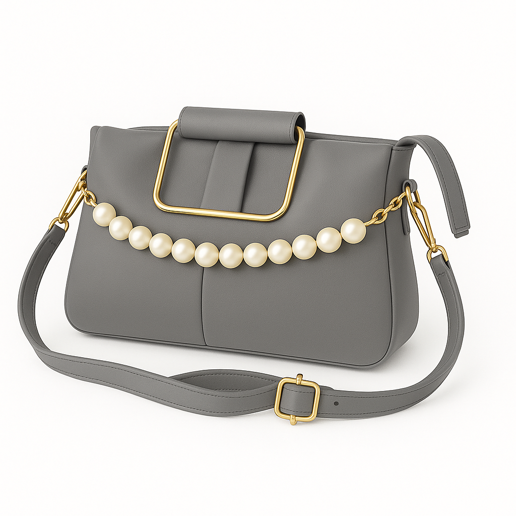 Stylish gray Fancy Party Bag for Women – Golden Handle Purse with Pearl Chain | Elegant Crossbody Shoulder Bag