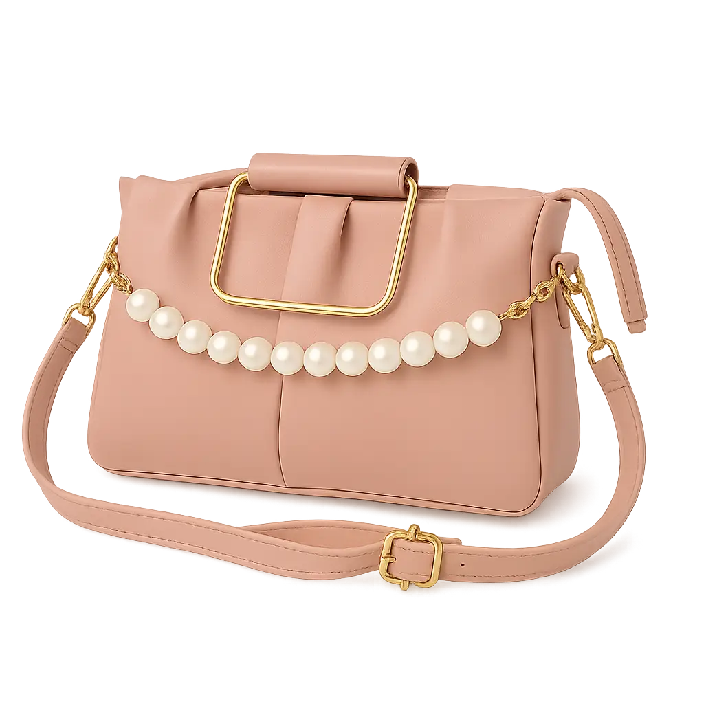 pink with white bg color 1200 by 1200Stylish Pink Fancy Party Bag for Women – Golden Handle Purse with Pearl Chain | Elegant Crossbody Shoulder Bag